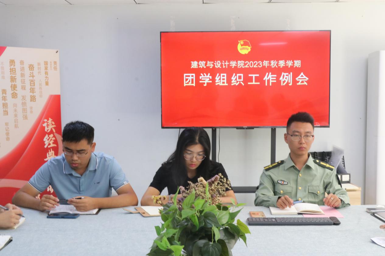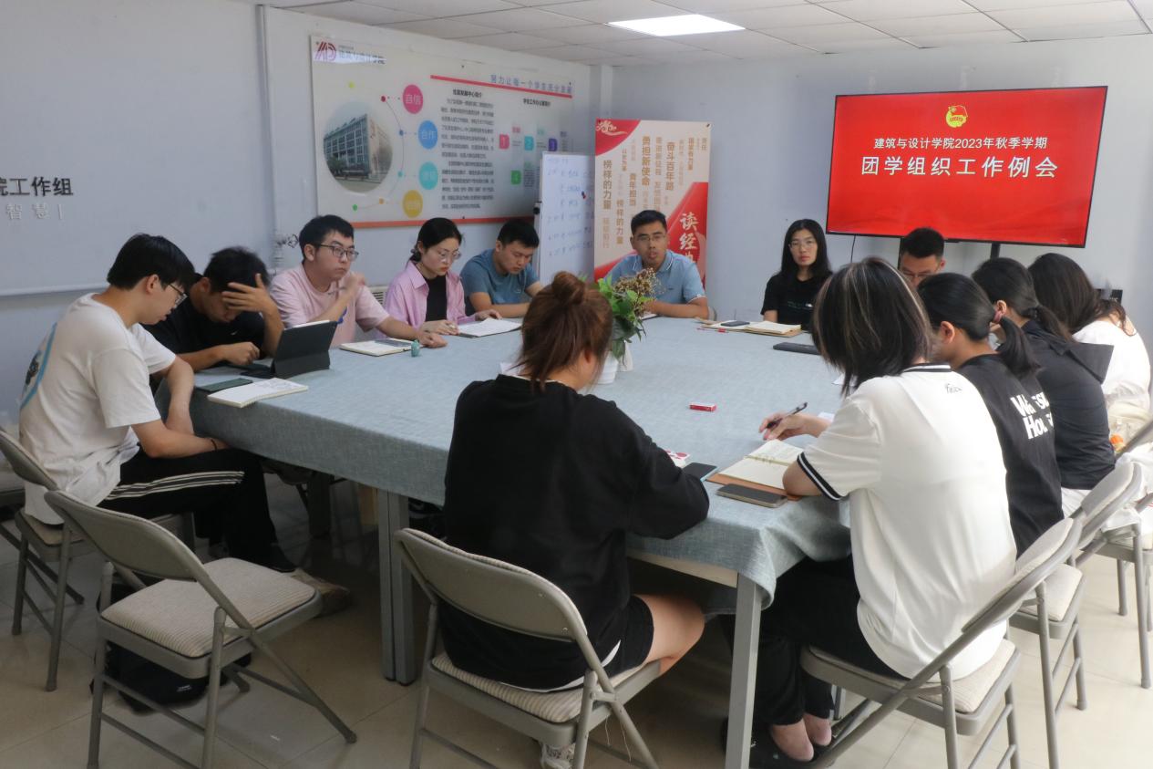 9月15日上午,建筑与设计学院在竹四党工委会议室召开2023年秋季学期团学组织第一次工作例会,学院学工办主任陈文雯、团委书记周天涯、学生会指导教师姚昊、团委秘书长孙一鸣及各组织负责学生参加本次会议。会议由周天涯老师主持。