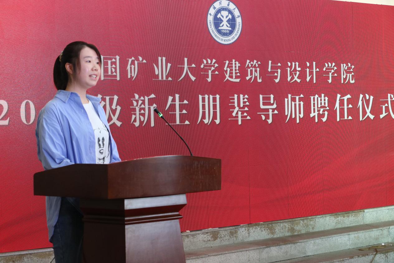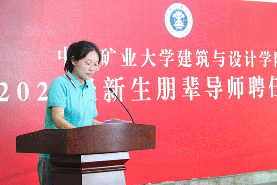 姚昊老师首先宣读了2023级新聘朋辈导师名单,共计28人。院团委书记周天涯为新聘朋辈导师代表颁发聘书。2021级建筑学专业胡梓钺同学作为新聘朋辈导师代表发言,她从端正思想态度、认真履职尽责、努力发挥作用三个方面对未来的朋辈导师工作进行展望。