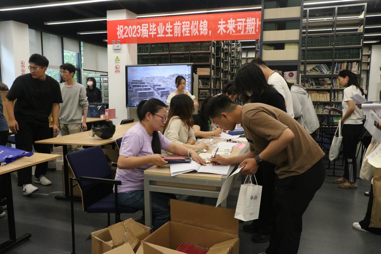 为方便2023届毕业生办理离校手续,6月17日上午,建筑与设计学院党政办公室、教学管理办公室、研究生与科研工作办公室、学生工作办公室及实验室工作人员及学生志愿者,在学院一楼资料室组织开展联合办公。