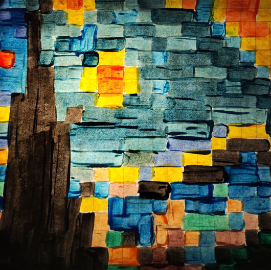 本次活动以“春天”为主题,同学们提取春季的校园中的元素与色彩进行个性创作,将想象力与意趣相结合,用一个个色块拼成春天的画卷,创作出独具特色的抽象马赛克艺术画。