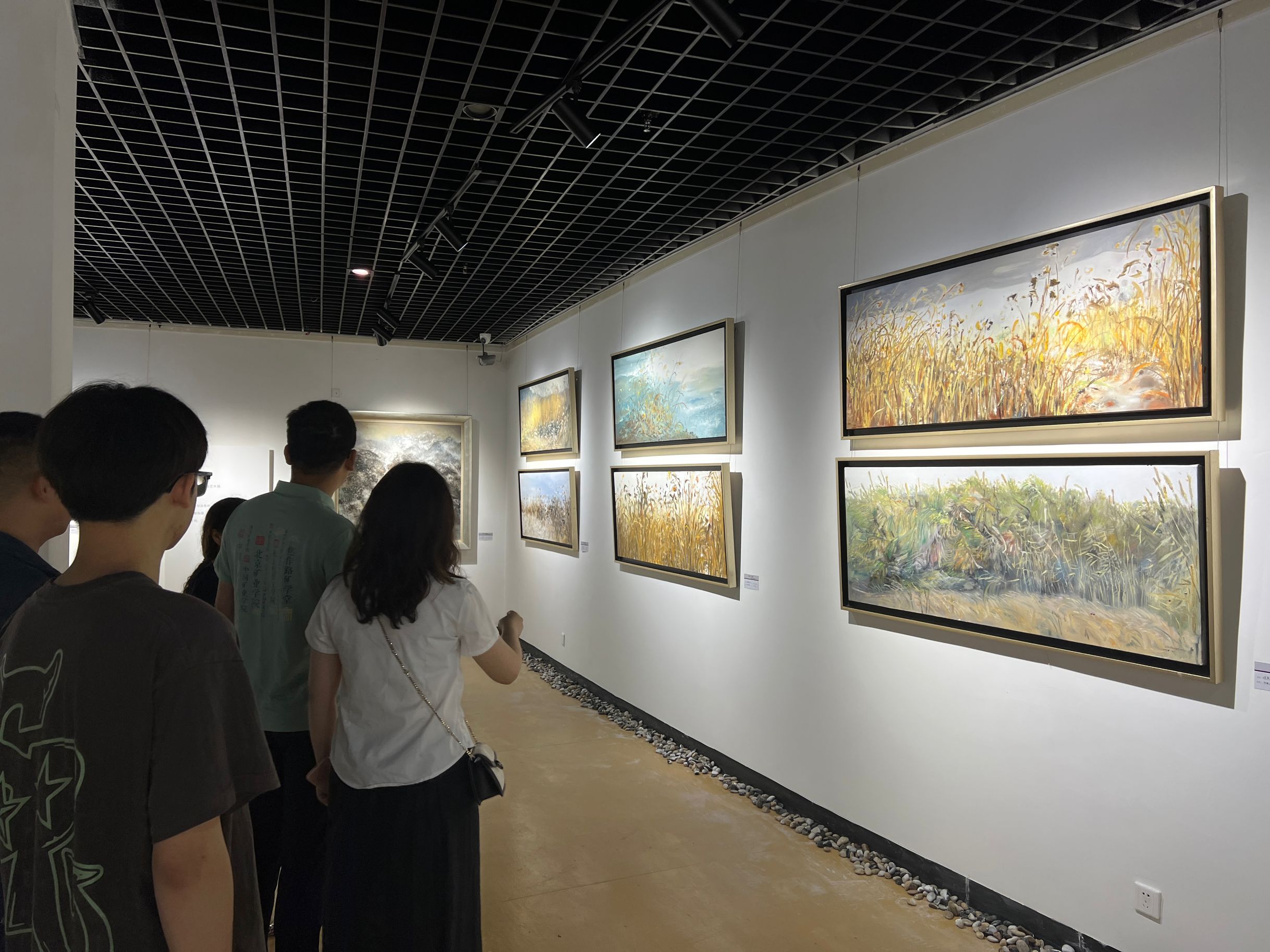 本次主题党日活动分为两个部分,一是参观学习刘群山老师的绘画艺术作品,二是开展艺术展引导介绍志愿服务。5月17日下午,王馨可、牛嘉琪、喻显媛等14位党员提前来到文博中心三楼东厅聆听刘群山老师讲解绘画艺术展内涵,熟悉绘画展览内容,为之后引导解说做好准备。5月18日上午,牛嘉琪、裴珈妤同学带队至展厅,在各自岗位负责参观引导、接待、解说等志愿服务工作。开幕式结束后,党支部书记周天涯带领支部党员集体参观艺术展,并合影留念。
