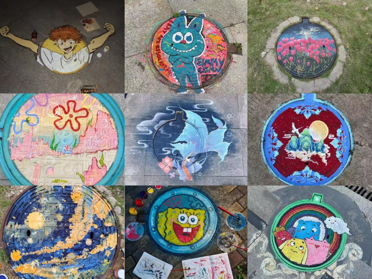 活动中,同学们发挥丰富的创造力和想象力,选取不同的创作题材,采用不同的绘画方式,一笔一划为校园内的井盖换上了富有艺术观赏性的美丽新装,为校园增添了一道靓丽风景线。本次井盖涂鸦的风格、主题各具特色,表达出不同创作的审美与情感,同时通过这种醒目方式减少同学们踩踏井盖而带来的安全隐患。