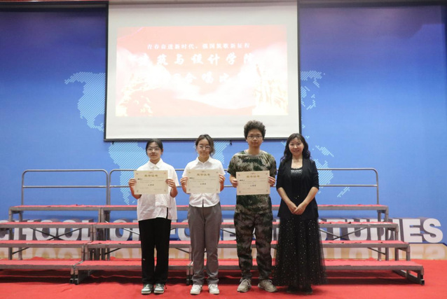 比赛结束后,设计学院党委副书记许梓楠、人文学院音乐系副教授朱文、设计学院辅导员陈文雯分别为获得一、二、三等奖的班级颁奖。