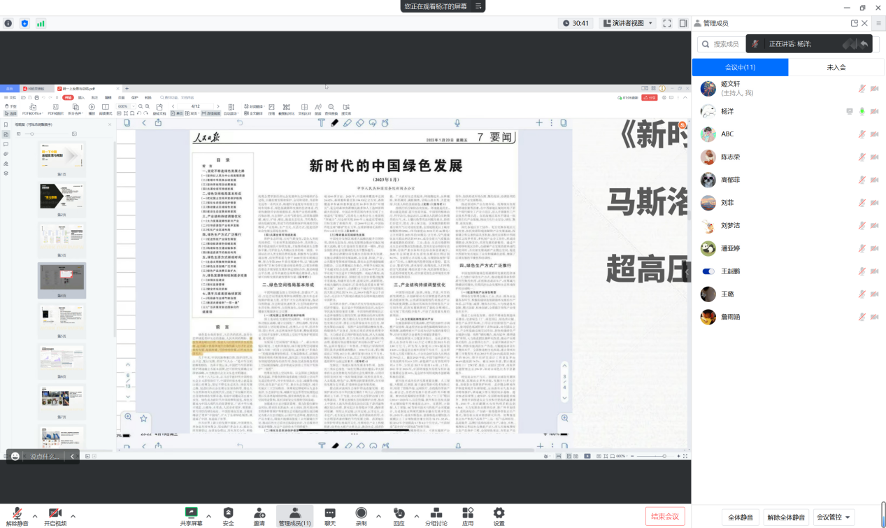 与会党员同志分享红色经典书籍,并结合个人实践交流学习感悟。姬文轩同学阅读学习的是《共产党宣言》,他通过朗诵片段及播放视频资料的方式,与大家交流并分享了学习心得。同学们表示《共产党宣言》是一个内容丰富的理论宝库,作出的理论贡献是多方面的,值得反复学习、深入研究,不断从中汲取思想营养。杨洋同学分享的是《新时代的中国绿色发展》白皮书,白皮书介绍了中国坚定不移走绿色发展道路的理念遵循,分享了推进绿色发展实践中形成和积累的宝贵经验,为共建繁荣清洁美丽的世界贡献了中国智慧、中国力量。