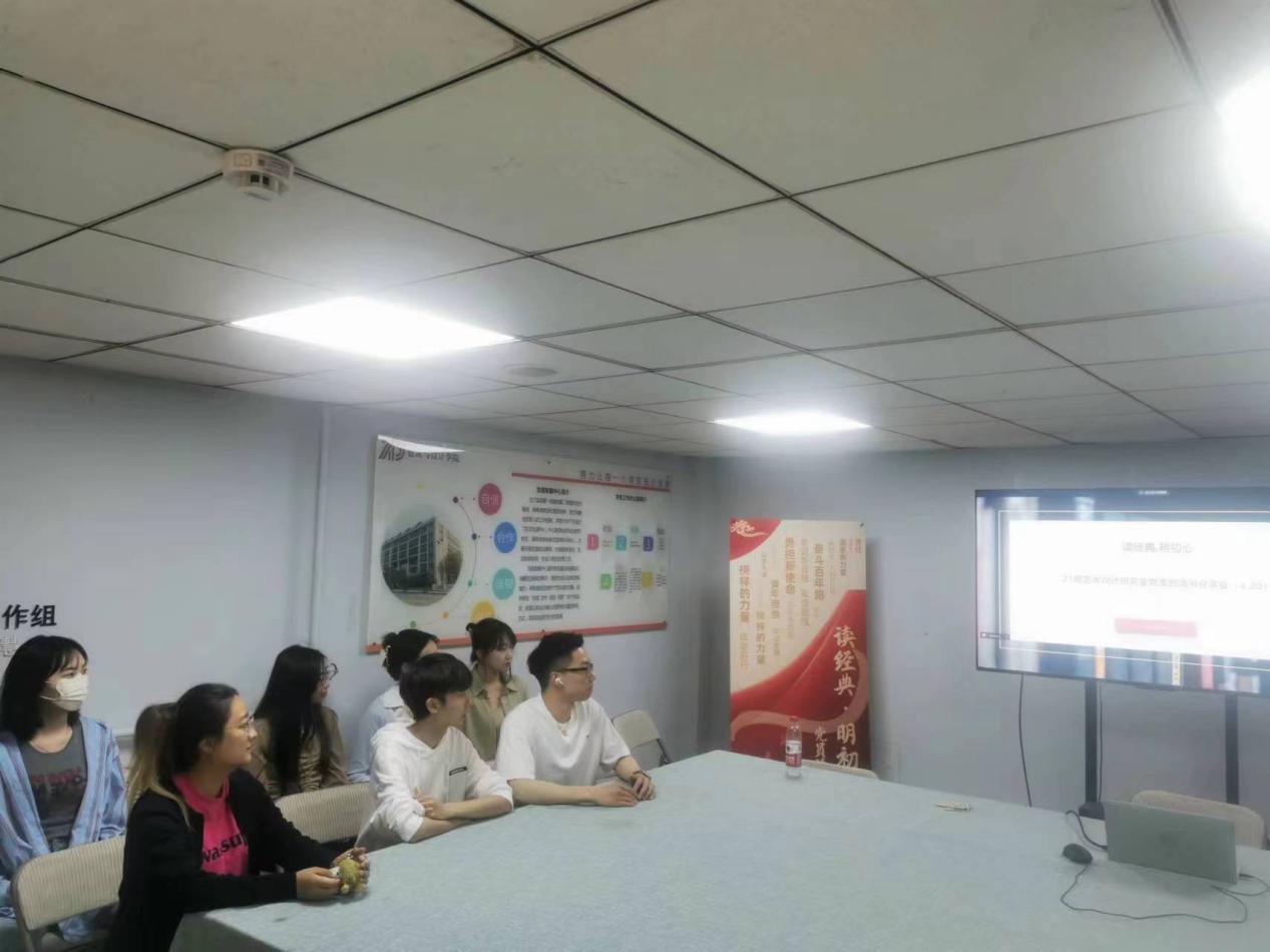 4月24日晚,建筑与设计学院21级艺术设计研究生党支部在竹四楼党工委会议室举办2023年第十二期“读经典·明初心”研究生党员读书分享会。21级艺术设计研究生党支部全体党员参加,活动由党支部书记孙垚主持。