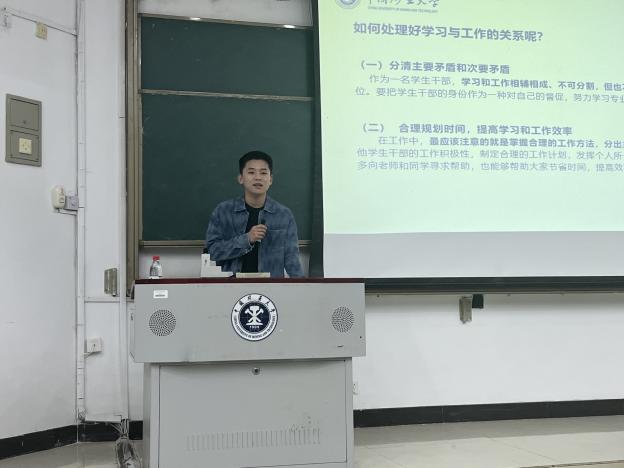 会上,报告团成员依次进行宣讲。21级本科生仇涵从学生干部工作、班集体建设、组织建设、主题班会等方面讲解了如何增强班级凝聚力,建设好一个班级,并号召同学们要在认真完成学业的同时,积极参加文体活动,团结一心共同建设班集体。22级艺术设计专业研究生魏铁彪讲述了他本科期间赴山西省灵丘县支教活动的经历,他鼓励同学们要不断提高组织协调和沟通能力,积极参与学生工作,为班级建设作出自己的一份贡献。拥有两年参军经历的19级本科生刘明明分享了他的入伍经历,讲述了许多热血的军旅故事和艰苦奋斗的案例,号召同学们将小我融入大我,在实现个人锻炼和发展的同时,为祖国发展贡献力量。19级本科生毛雪颖和20级本科生林小静分别结合自身的实践经验对同学们的大学生涯规划提出建议,鼓励各位学弟学妹在大学期间要大胆尝试,自强不息,找到属于自己的人生方向。