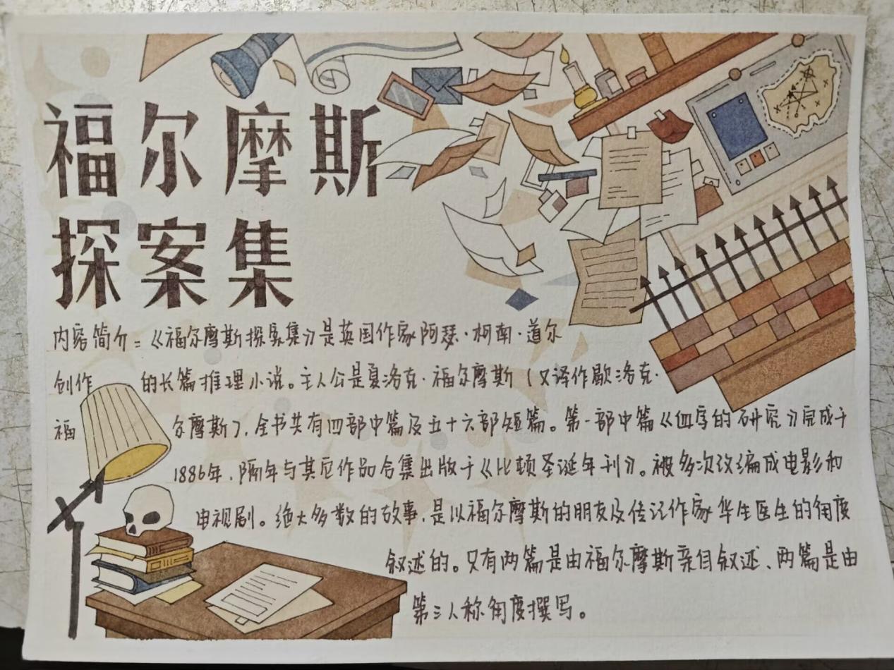 在认真充分阅读相关书籍的基础上,同学们设计制作了精彩纷呈的读书卡,通过这种方式,分享书籍内容及阅读体会。在制作读书卡的过程中,同学们不但锻炼了总结归纳、提取重点的能力,还能体验到手绘排版的乐趣。