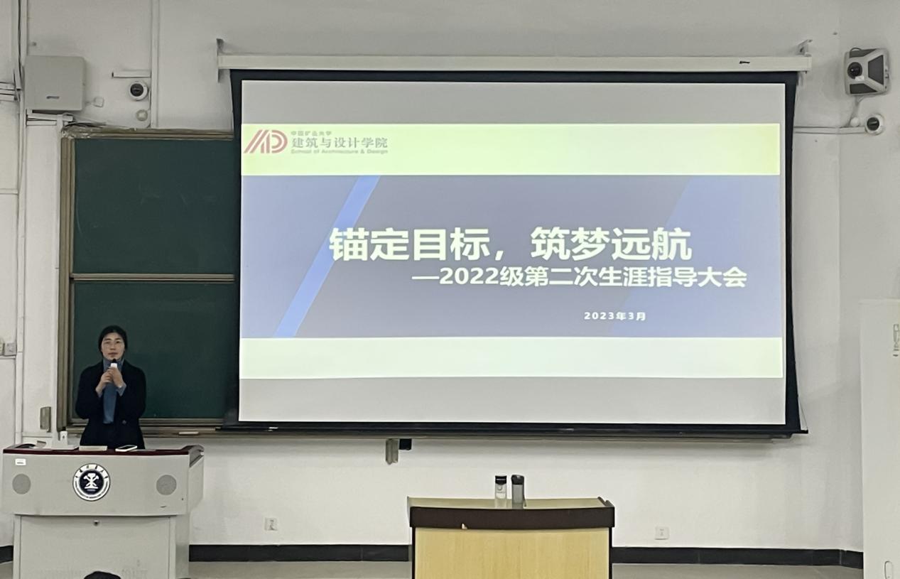 3月24日晚,建筑与设计学院在博二楼C102教室召开“锚定目标,筑梦远航”为主题的2022级本科生第二次生涯指导大会。2022级辅导员陈文雯、兼职辅导员王琛以及2022级全体本科生参加会议。会议由陈文雯老师主持。