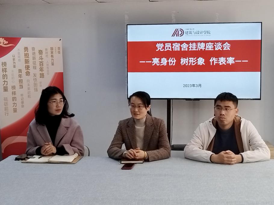 3月30日上午,建筑与设计学院于竹四党工委会议室举行了党员宿舍挂牌座谈会。院党委副书记许梓楠、学工办主任陈文雯、团委书记周天涯及部分党员宿舍代表参与本次座谈会。会议由周天涯老师主持。