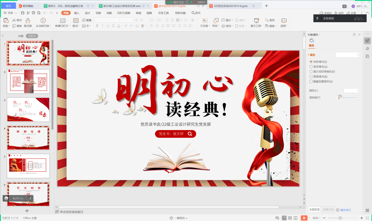 3月15日下午,建筑与设计学院举办2023年第五期“读经典·明初心”研究生党员读书分享会,本次读书分享采取线上方式进行。22级工业设计研究生党支部全体党员参加会议,会议由党支部书记姬文轩主持。