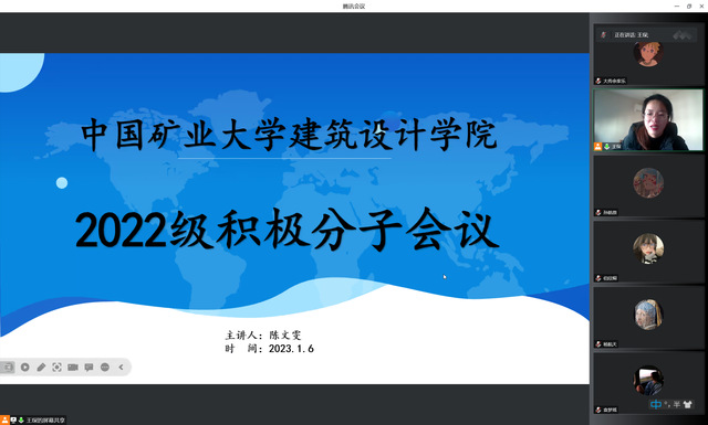 为做好积极分子的培养工作,提高学生的思想政治素质和党性修养,1月6日上午10时,建筑与设计学院开展了2022级第一批积极分子线上会议。年级辅导员陈文雯老师、兼职辅导员王琛老师参加了会议。