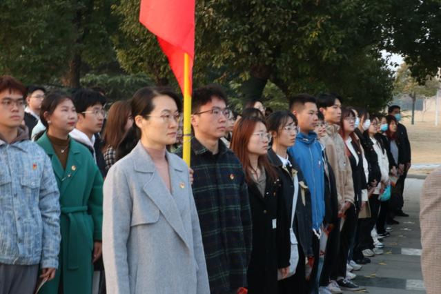 升旗仪式结束后,我院师生在国旗广场合影留念。