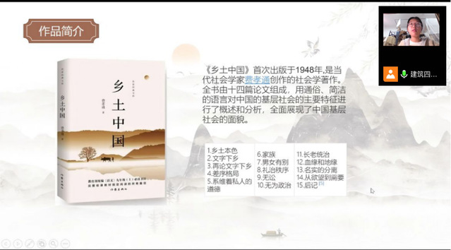 首先,李仕杰同学带大家再回顾了阅读书目《乡土中国》的章节内容和作者简介。接着,同学们划分成小组,分别分享在阅读《乡土中国》之后对中国乡土社会的理解和对书中一些观念的见解,也有同学展示了在读书过程中绘制的风景画、书签等艺术作品。最后,班主任郭斯凡老师总结本次读书会,她肯定了同学们的积极参与,并与同学们交流了一些专业学习上的问题与建议,鼓励同学们在专业学习上应该多读书、读好书。