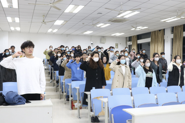 团支部成立大会结束后,院团委书记周天涯讲授题为《恪守学生本分,牢记服务宗旨,加强和改进学生会、研究生会作风永远在路上》的主题团课。团课以学联学生会的历史渊源、从严治会背景下对作风建设的要求、近些年来的案例警示等三个方面介绍并强调了学生会、研究生会要坚持不懈改革创新、持之以恒转变作风的必要性、重要性和紧迫性,希望全体工作人员恪守学生本分,认真践行学生会、研究生会为同学服务的宗旨使命。最后,由研究生会主席李肖璇带领学生会、研究生会参会工作人员集体宣誓。