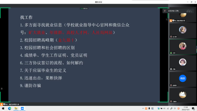 为进一步做好2023届研究生就业工作,10月5日下午,建筑与设计学院以腾讯会议方式组织开展了2023届研究生就业指导大会,会议邀请到我校2017届校友、现在邳州市人民政府工作的曹震学长进行就业经验分享。会议由研究生辅导员林仁强主持,2023届全体研究生参加。