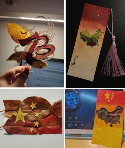 国庆假期期间,建筑与设计学院举办了“与国庆华诞”落叶书签创意活动,利用触手可及的校园落叶,将对祖国的热爱融入创意书签之中,通过这种形式营造欢度国庆的校园文化氛围。此次活动由青年思想者学习社承办。
