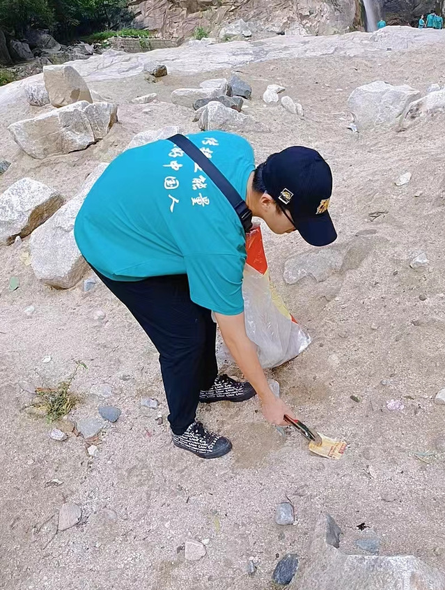 8月3日,组员赵恒辉和爱心团队一起外出献爱心。炎炎夏日,他们一行人行驶过漫漫山路,在车上分享许多暖心感人的爱心事迹。他们来到了百尺潭景区,在这里他们手提垃圾袋,手握夹子,将景区的垃圾进行了清理。之后一众人来到了深山里看望一处困难人家并给他们送来了爱心人士捐助的大米、鸡蛋等物资,给予了他们一定的帮助。他说:“愿我们时刻都能知足常乐,时刻抱有一颗善心,在做公益活动、献爱心的这场人生修行中一直坚定地走下去……”