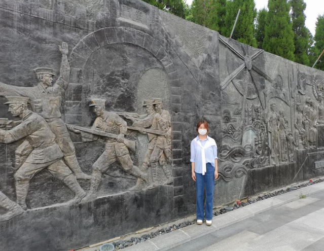 实践团成员苗舒涵于7月30日来到了徐州市淮海战役纪念馆。战役烈士纪念碑及淮海战役纪念馆建立在淮海战役烈士陵园的基础之上,是党史学习的绝佳之地。淮海战役纪念馆定期组织退役军人、党员群众和青年学生进行参观学习、吊唁烈士,引导全社会各界人士拥军爱民、投身国防事业、铭记革命历史、铭记英雄事迹。