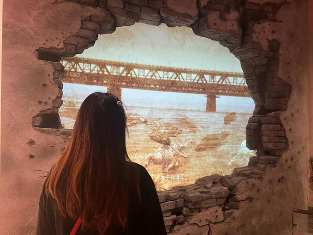 实践团成员王蔚悦于7月29日来到了萧山博物馆,参观了《盛世永兴——萧山历史文化陈列展览》。团队成员主要参观了红色主题展馆,在参观过程中,“断壁残垣”中播放的抗战影片,战壕里手握望远镜的士兵,一声声“我们愿与大桥共存亡”,使虚拟与现实、历史与现代通过影片交织融合在一起,使团队成员切身感受到了时空时间的穿梭变化,观影时仿佛穿越回到历史中一般,产生了最真切直接的情感冲击。此外,团队成员还认真学习了有关于衙前农民运动的有关历史。
