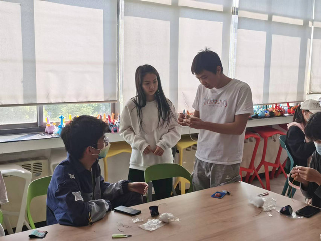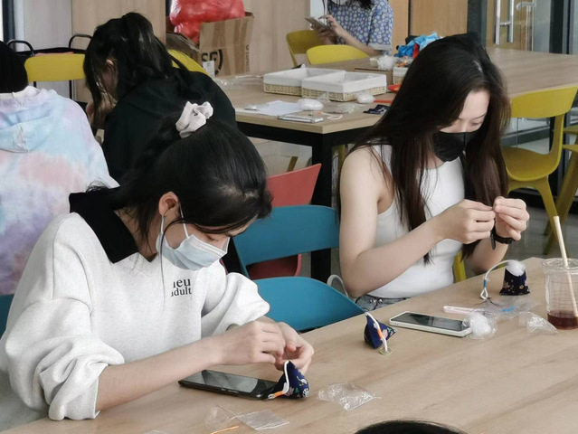 首先,姚咏恺老师和非遗工坊社团负责人为同学们讲解了徐州香包文化和非遗文化,香包,又称“香囊”,“香缨”,俗称“香布袋”、“料布袋”。徐州香包是传统的民间艺术品,制作和佩戴香包的习俗在中国由来已久。随后,社团负责人详细讲解了香包制作过程,并为同学们进行了制作演示。随后,同学们以小组的形式开始制作香包,通过分工合作,一针一线缝制出来的香包更蕴含了真挚的情谊。