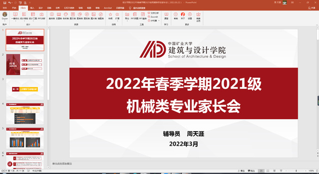 3月22日晚19时,建筑与设计学院通过腾讯会议开展2021级机械类专业线上家长会。2021级辅导员周天涯、兼职辅导员姚咏恺及60余位机械类专业的同学家长共同参加此次会议。