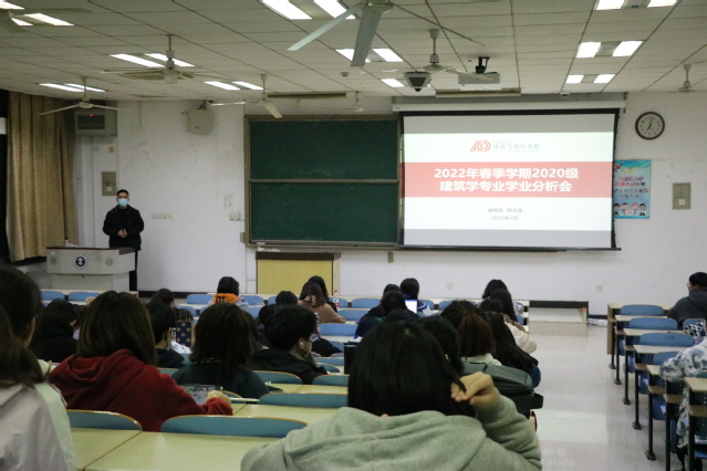 为进一步加强学风建设,提高学生积极性、主动性,建筑与设计学院于3月8日晚7:00在博学楼1号楼A-101举办20级建筑学专业学业分析。本次会议由建筑与设计学院辅导员周天涯老师主持。