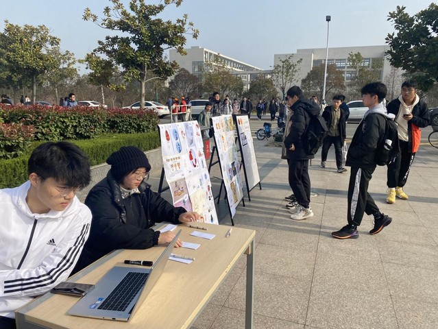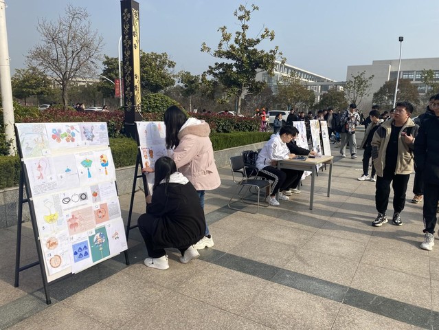 12月15日中午12点到下午6点,中国矿业大学建筑与设计学院团委主办的“香包书写创新,创新传承非遗”设计图纸线下投票在二食堂青春广场顺利完成。