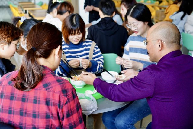 当饺子下锅,活跃地在水中翻滚着,大家也渐渐安静下来。班主任朱老师将大家聚拢起来,与大家谈论起近期的学习生活情况。朱老师还对大家提出了多阅读、勤复习、多锻炼、养成良好作息的建议,同学们纷纷点头,并将这些建议牢记于心。