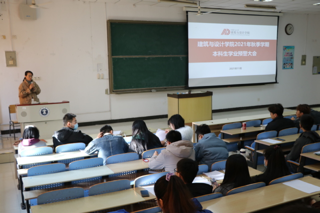 为端正学生学习态度,营造优良学风,进一步强化学院“三风建设”,11月24日下午一点,建筑与设计学院2021年秋季学期本科生学业预警大会在博学楼一楼C104教室召开。建筑与设计学院院党委副书记许梓楠、教学办主任胡晓蕾、各年级辅导员老师以及学业预警同学参加此次会议。