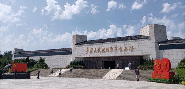 8月10日,实践团成员来到了中国人民抗日战争纪念馆,走进抗日战争纪念馆,映入眼帘的是大厅正前方的大型《铜墙铁壁》的巨型雕塑。雕塑上方蓝色的星空,脚下是黑色的大理石,三者相结合,寓意着抗战英雄顶天立地。在出口处,有一面留言墙,标题为:庆祝中国共产党成立100周年。有许多戴着红领巾的孩子驻足在墙边,这些少年也终会成为新中国的建设者,他们中的一部分也会延续前辈精神,成为中国共产党的建设者,就这样薪火相传,生生不息。