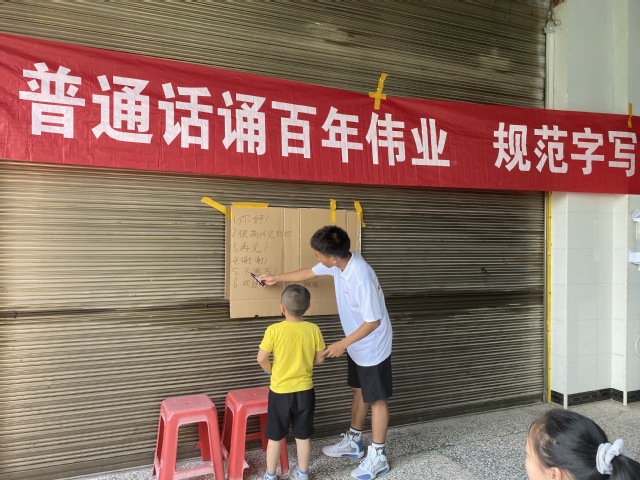 为积极响应国家“扶贫先扶智,扶智先通语”的号召,帮助农村人口掌握国家通用语,避免与外地人的交流隔阂,实现顺畅的沟通。8月5日, “推普走进多彩贵州,讲好乡村振兴故事”大学生暑期社会实践队赴贵州省凯里市炉山镇开展“推普小课堂”实践活动。此次活动主要通过实践团成员教授小朋友们一些生活中的日常交流用语,将普通话与小朋友们的日常生活紧密结合,让其切身感受到普通话的实用性,为进一步推动乡村振兴奉献自己的一份力量。