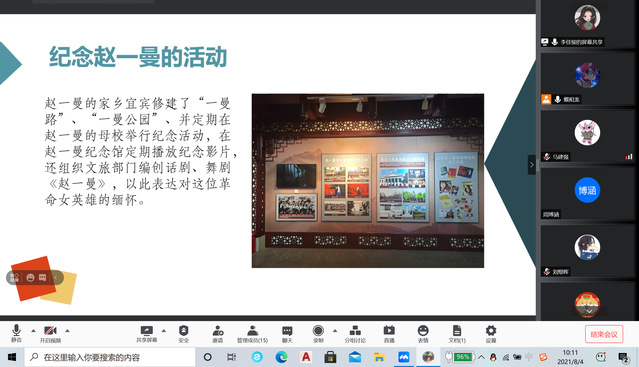 之后实践团在线上组织了会议,由团队成员以及队长分享了实践的过程以及所得的感想,向全组同学进行了汇报与分享。此次活动从前期的准备到实地进行实践历时半个月。在这半个月的时间内,成员们深深感受到了党的伟大的革命性,超前的创造力和不朽的精神力量。