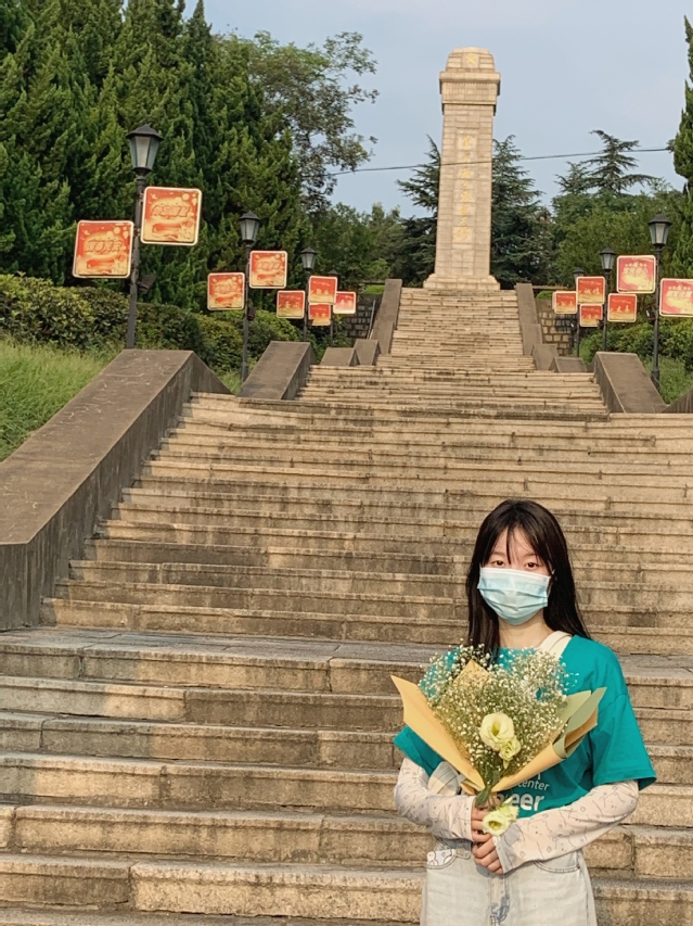 实践队员分为两组,一组跟随李佳骏同学来到了四川省宜宾市的赵一曼纪念馆中。进入到馆内,团队成员从墙上的展览中学习了赵一曼面对敌人的严刑拷打,她始终不屈服,展现出的革命战士坚强不屈得精神,以及共产党人的坚毅。随后实践团又前往赵一曼女士生平纪念馆,了解伟人的一生,团队成员深切体会到只有历经艰难险阻,才能达到最后的胜利。另一组的同学则跟随王怡宁同学来到了蚌埠市烈士纪念陵园。在烈士陵园庄严肃穆,松柏常荫,成员们感受到了历史的厚重,与先辈伟大的精神的不朽。团队成员手捧白花,默哀4分钟,以此表达对先烈的追思和敬仰。然后将自己手中的花束,献给英雄们,放在烈士纪念碑前。最后对于烈士陵园中的展览馆一一进行了参观。参观结束后,王怡宁同学有感而发:“在这里,我了解到了我们党光辉的历史,更加坚定了我对于党的向往与憧憬。并且我们现如今的幸福生活,正是建立在巨人的肩膀上,我们不应忘记过去历史,才能创造明天的辉煌。”