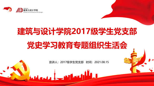 为认真贯彻“学史明理、学史增信、学史崇德、学史力行”要求,推动党史学习教育走深走实。8月15日下午,建筑与设计学院2017级学生党支部开展线上党史学习教育专题组织生活会,交流学习体会,查找差距不足。建筑与设计学院2017级学生党支部全体成员参加,会议由党支部副书记秦苏东主持。