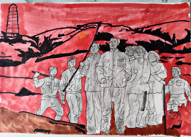 团队成员绘画革命英雄