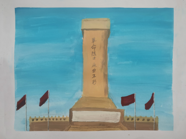 团队成员绘画革命烈士纪念碑
