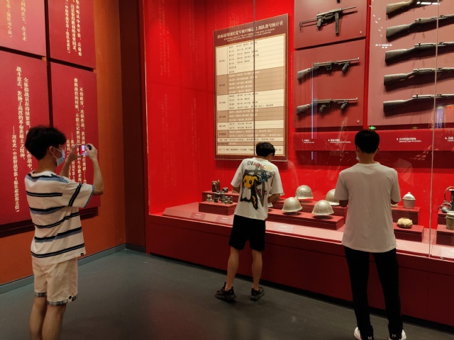 上午团队成员首先参观了淮海战役纪念馆新馆以及国防教育馆两大纪念场馆。通过馆内工作人员介绍,成员们了解了相关的历史背景,深刻领略到历史故事与珍贵文物中的文化内涵。然后又观摩了关于战役的电报手稿以及作战用的电台,欣赏了馆内收藏的精美国画、油画、雕塑等。除此之外,实践团队在下午还参观了淮海战役纪念园区内的粟裕将军纪念处、新四军纪念林、淮海战役烈士纪念塔等缅怀革命志士的特色景观,以及将军与烈士的浮雕、遗物等。使团队成员深刻感知到在那个动乱年代,这些先烈们浴血奋战、英勇冲锋的精神,以及为祖国献身,为后人换取和平的伟大。