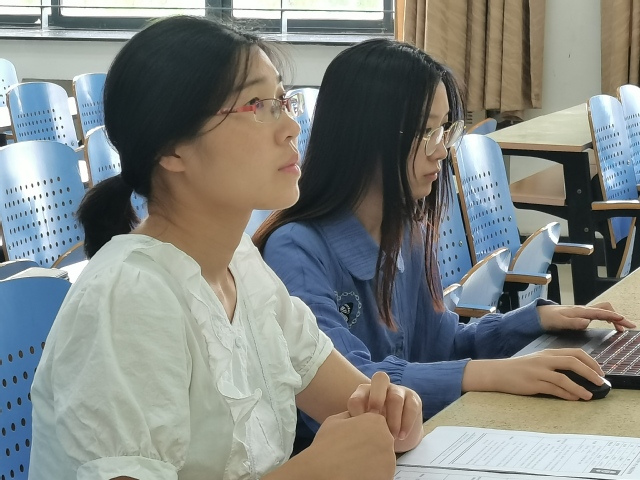 陈文雯老师正在认真了解同学们答辩情况