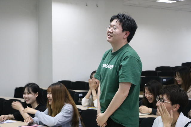 最后,2018级党支部组织委员王雨使用题目小问答的形式,结合党章内容,让同学们进行抢答。同学们积极回答问题,并对答案做出了详细的解析。在宣传周活动结束后,组织委员王雨带领大家再次复习入党宣誓词,作为收尾活动。