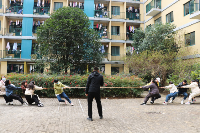 本次趣味运动会比赛形式多样,共设有踢毽子、拔河比赛、摸石过河、转呼啦圈、螃蟹赛跑等七个项目。虽已初春,但室外天气略有寒意,但是同学们依然积极参与到活动中来,现场气氛十分高涨。在“螃蟹赛跑”的项目环节中,各组成员们齐心协力,保持口令一致、步调一致、节奏一致,完美地完成了比赛项目。其中,拔河比赛将趣味运动会的气氛推向高潮,同学们口号整齐,齐心协力的完成目标。“摸石过河”则考验身体的协调性与平衡感,参赛的同学们有的选择快速短距离的方法前进,有的则选择慢速长距离的前进方式,现场十分热闹。踢毽子、转呼啦圈、吹乒乓球等项目也在各队的拼搏和欢快中逐一有序进行。上午十一点半,活动结束,人员根据各组得分评出优胜奖、参与奖、鼓励奖三个类别,并颁发奖品。活动最后工作人员合影留念。