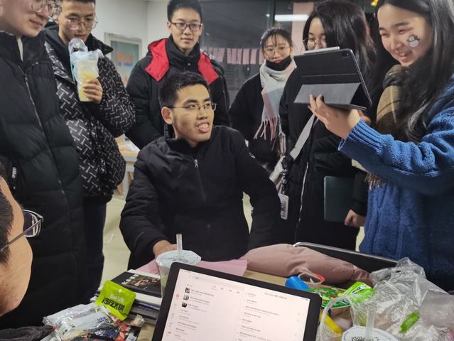 经过前期精心的布置,活动室在气球、彩带、彩色花灯等各种装饰品的映衬下处处洋溢着欢快的气氛。在“告别2020”活动中,周天涯老师与同学们一起进行歌曲竞猜游戏,欢笑声久久不散。丰富多彩的游戏项目、独具匠心的娱乐方式吸引了许多同学老师驻足观看并积极参与。游戏设有奖品,参加的游戏越多所得到的奖品越丰厚。随着活动临近尾声,活动现场依旧充满欢声笑语,展现了浓厚的节日气息,同学都恋恋不舍、余兴未尽。活动最后,老师与同学们共同表达了对2021的期望与祝福并合影留念。