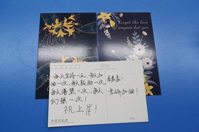 “这个明信片让我感到很惊喜”,一位考研同学说,“感到自己受到了关心,很感动,也会好好努力的。”这次活动,给考研学子带来鼓励的同时,不仅拉近了党支部与同学们的距离,更让各位党员体会到于细微之处服务同学的成就感。
