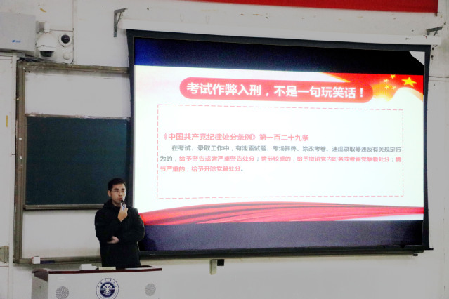 为深入学习宣传宪法精神,进一步严肃学风考纪,在第七个“国家宪法日”来临之际,12月4日晚19时,建筑与设计学院2020级新生“宪法日”主题教育暨学风考纪教育大会在博2-C102顺利举行。会议由2020级辅导员周天涯主持,全体2020级学生参加本次大会。
