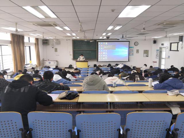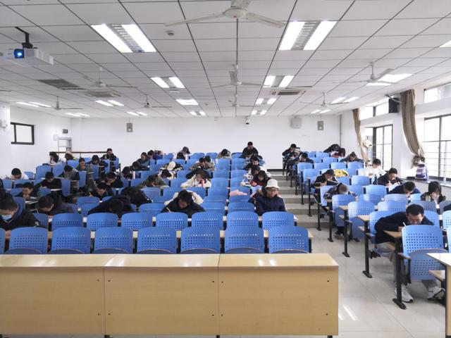 建筑与设计学院环境设计专业、机械专业以及建筑学专业的同学分别在3个不同的教室内进行英语四级模拟考试。考试开始前,监考人员提前做好准备并播放考场纪律细则,引导同学们有序地完成签到、分隔入座、上交手机等流程。考试环境安静有序,每个考生都沉浸在考试当中,有条不紊地答题。考试全程无作弊等不良现象。考试结束后,同学们均按时交卷,有序离场。