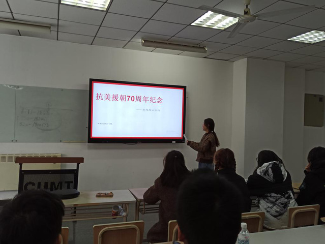 为践行全面实施“信仰公开课”计划引领深入学习习近平新时代中国特色社会主义思想,建筑与设计学院环境设计19-3班于学院楼A306开展了“新思想公开课——抗美援朝70周年纪念”主题团日活动。