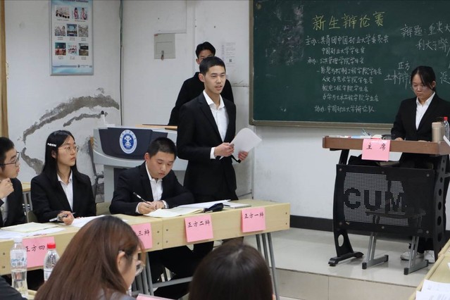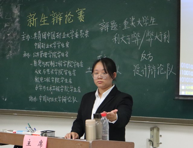 由共青团中国矿业大学委员会和中国矿业大学学生会主办,公共管理学院、信息与控制工程学院、人文与艺术学院、机电工程学院、力学与土木工程学院联合承办的新生辩论赛于11月11日晚上七点,在博4C208举行。此次比赛由张慧颖,徐蝶,张言培,黄仟启,梁嘉缘五位同学担任比赛评委。