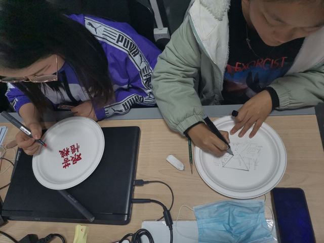 活动伊始,团支书李明璇向大家讲解了本次活动的内容,即每个人就节约粮食为主题在空白的盘子上进行创作。随后李明璇又向大家阐述了本次活动的意义,同时班委向大家分发了本次活动所需要的材料。然后,纸盘创作活动正式开始,大家积极讨论,现场气氛热情高涨。作品创作完成后,以小组为单位进行了展示。此外,团支书还组织大家投票筛选最佳作品,并给予奖励。