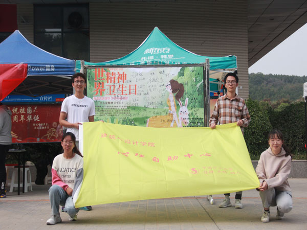 为迎接世界精神卫生日的到来,加强师生对心理健康问题的重视,10月10日上午10时,建筑与设计学院心理自助中心联合机电工程学院,力学与土木工程学院和材料与物理学院在一食堂广场开展了以“弘扬抗疫精神,护佑心理健康”为主题的宣传活动。活动面向全体师生。