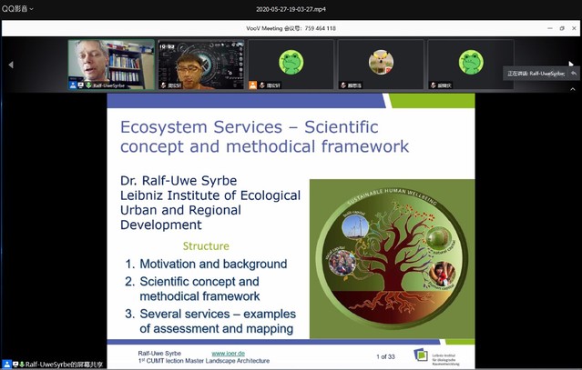 2020年初,在建筑与设计学院常江教授团队成员的共同努力下,德国莱布尼茨生态城市及区域发展研究所的Ralf-Uwe Syrbe教授被我校聘请参与2019-2020第二学期《城市生态理论与实践》课程的联合授课,该课程面向2019级城乡规划学专业研究生和部分艺术设计专业研究生开设,由周宏轩副教授主讲。