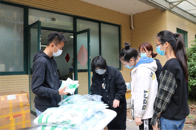 4月21日下午,建筑与设计学院组织建档学生在桃四及竹四楼下领取由校友李昱成于4月17日向学院捐赠的医用口罩及酒精等防护用品。